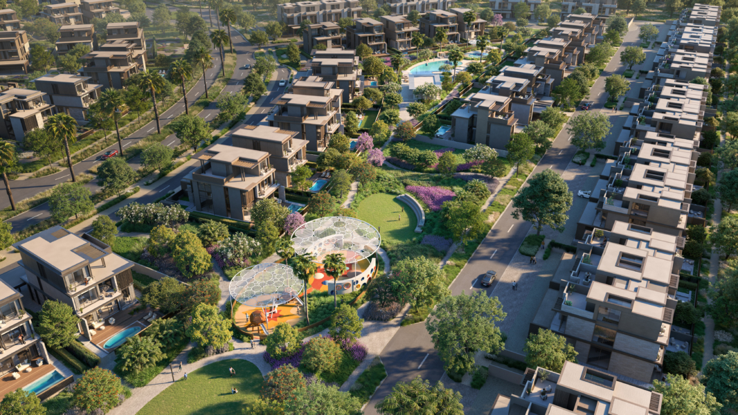 and purpose, thoughtfully designed to cater to contemporary lifestyles and passions. Its captivating districts reflect a commitment to delivering a luxurious living experience. The modern villas, distinguished by signature bronze and grey screens, are carefully crafted to provide premium views of pocket parks while maintaining a sense of privacy.
