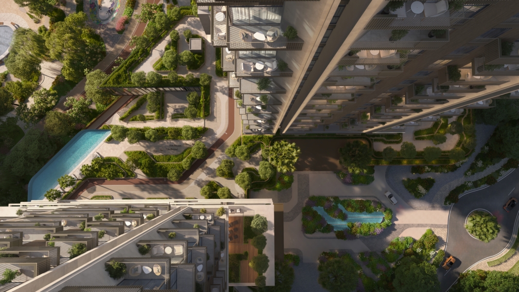 Two distinct loops connect the towers, each designed to support long-term wellbeing. From the high-energy Active Loop with outdoor gyms, padel courts, pools and play areas—to the calming Recovery Loop with a mindfulness deck, yoga pavilion, nature trails and healing gardens, every space is mapped with purpose.