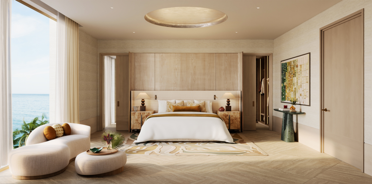 Ranging from 1,900 sq. ft to 7,600 sq. ft., these spacious, light-filled residences put a contemporary spin on beachfront living, with select layouts offering courtyard views upon entry. Interior design highlights include stone flooring, marble flourishes, timber joinery and tactile furnishings. Expansive sea vistas are revealed through generous windows, with living rooms strategically placed to optimise the views. Enhancing the residential experience, residences from three bedrooms upwards feature both a show kitchen and a prep kitchen while the five-bedroom layouts situated on the penultimate floor showcase triple-aspect views.