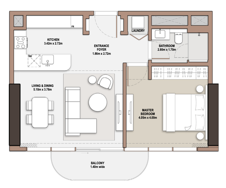 Designed as a dynamic triad, The Edit at d3 rises in a choreographed harmony of architectural rhythm across the skyline. Soft edges, filleted corners and continuous balcony lines adorn the façades, while the sky gardens carve dramatic recesses into the vertical structure, creating a supreme sense of light, space and greenery even from the outside.