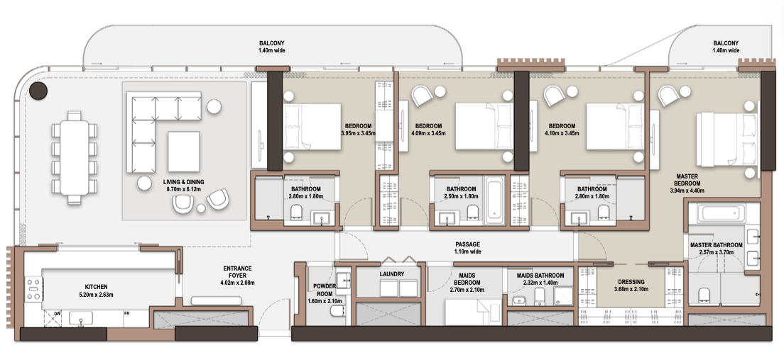 The towers feature 1–4 bedroom residences, signature 5-bedroom penthouses, wellness and fitness spaces, and landscaped sky gardens.